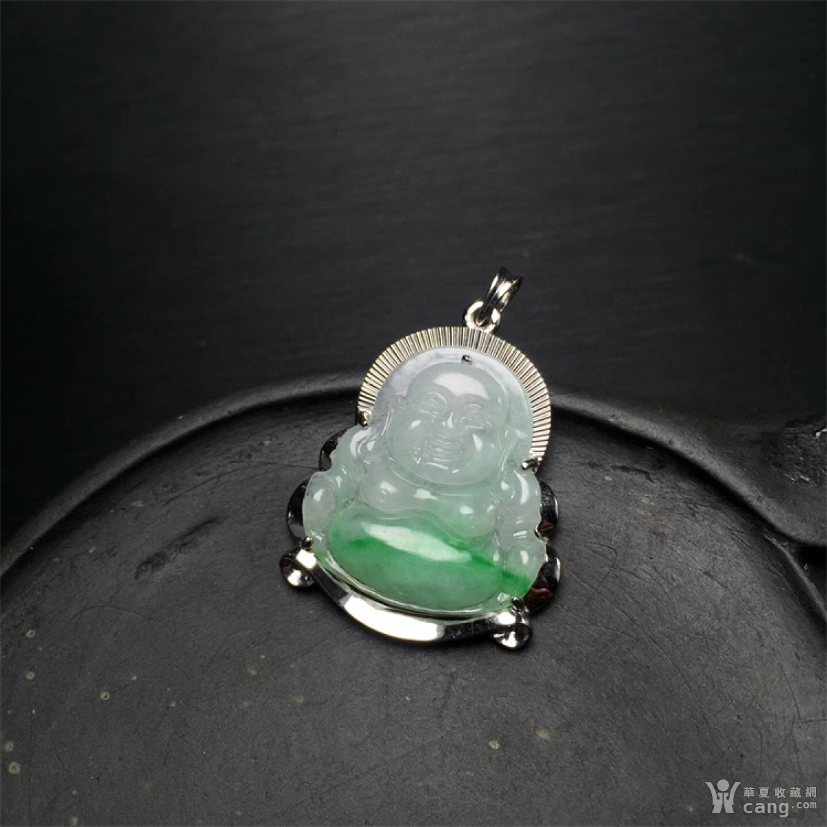 x744创汇期18k白金镶白地青翡翠弥勒佛挂件