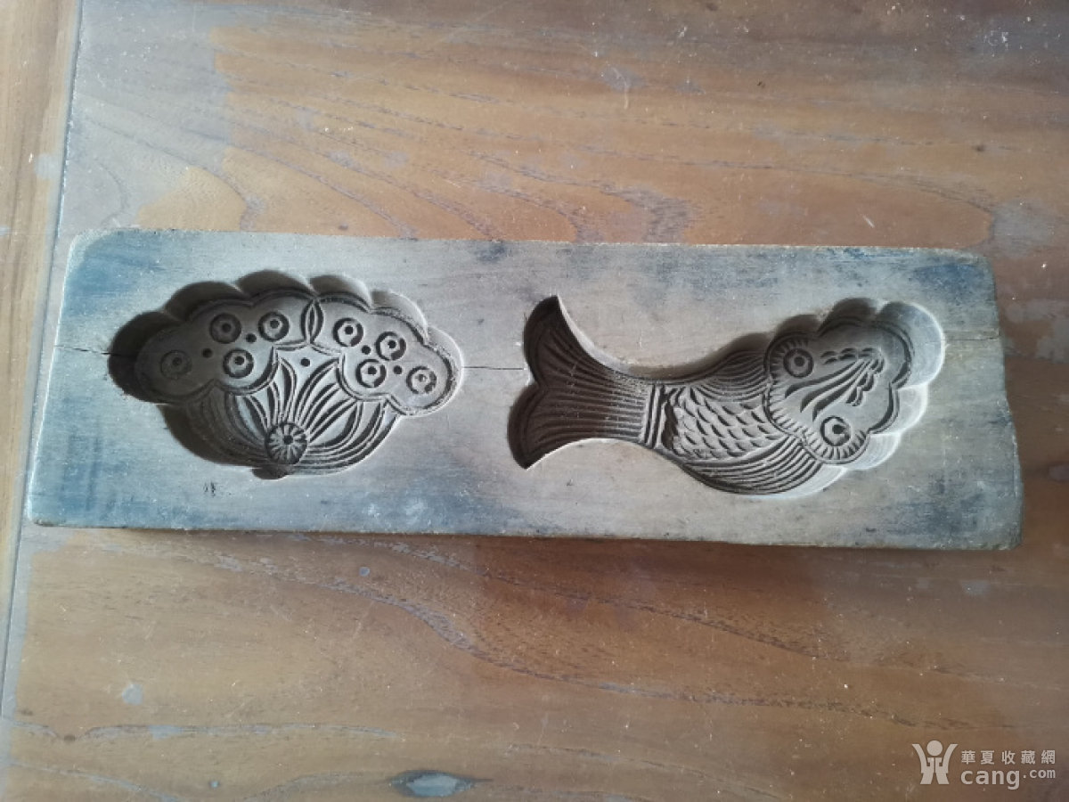 清代乾隆香樟木制作的鱼和莲糕点印模板一块