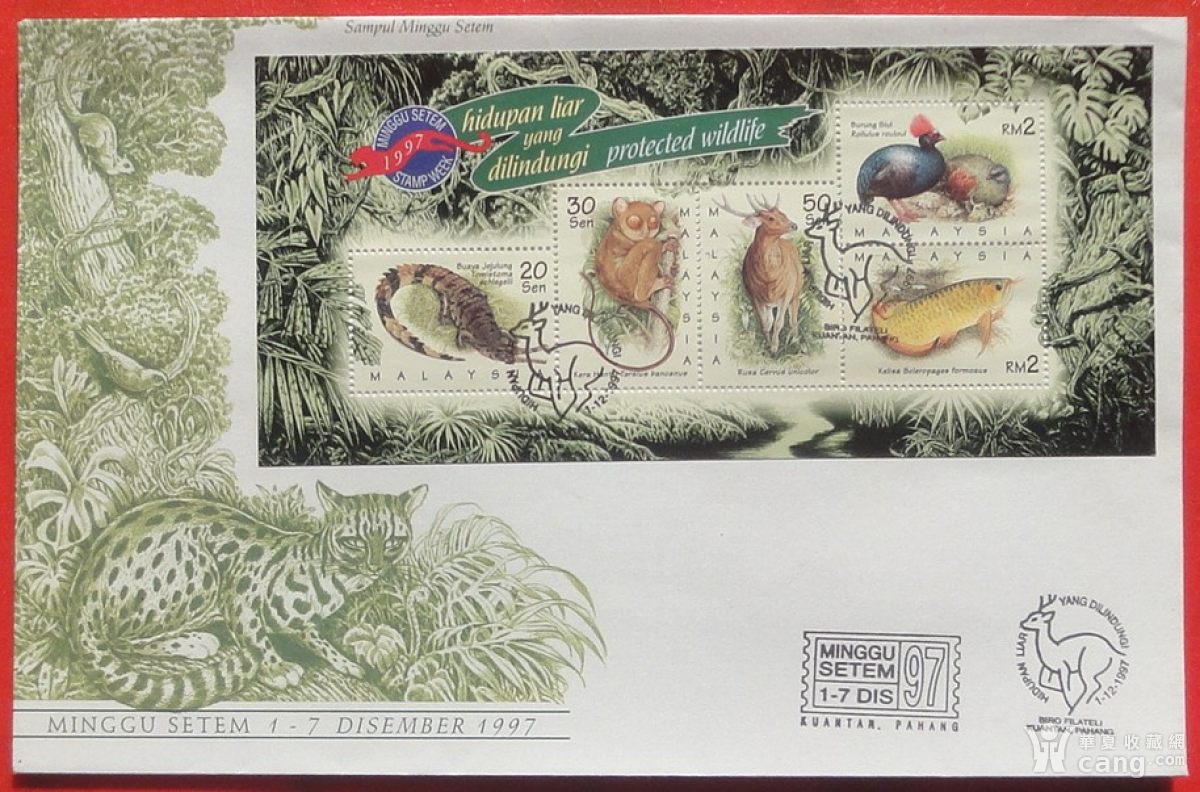 马来西亚邮票首日封1997年12月1日珍稀动物五枚全套