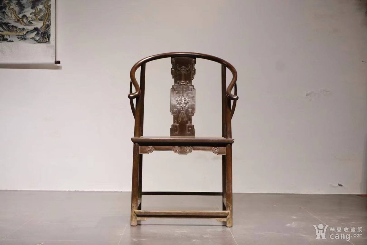 老红木圈椅;造型古朴典雅,线条简洁流畅,背板浮雕吉庆有余,雕