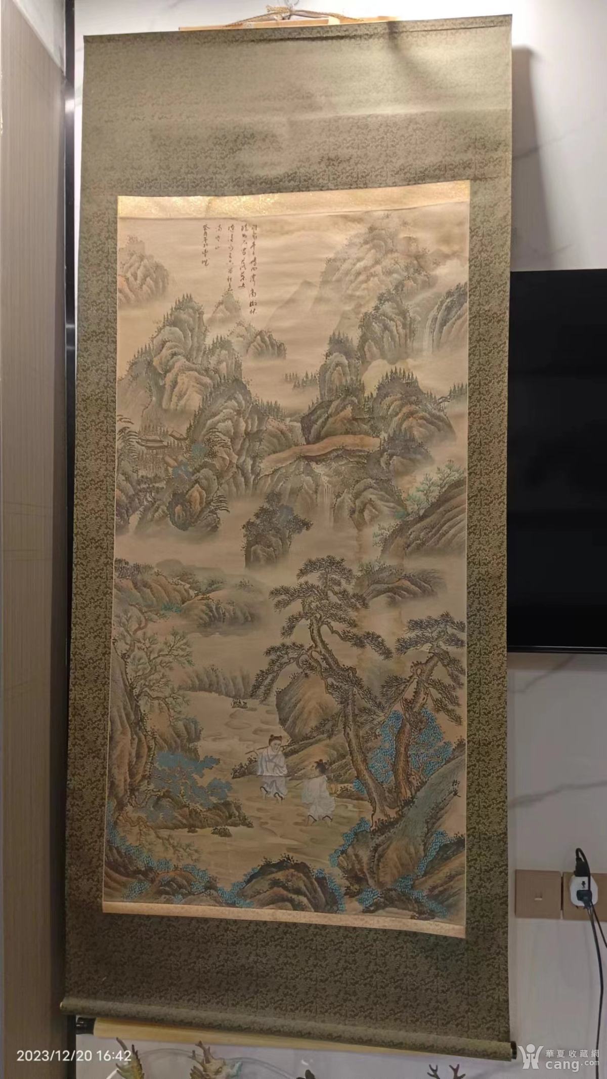 画心长135宽70厘米,民国大尺寸手绘老山水画绢画二士入桃源