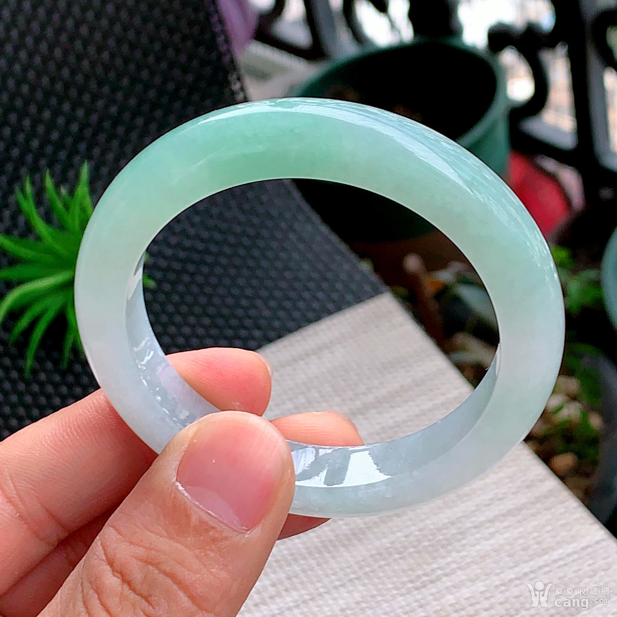 缅甸天然翡翠A货冰透水润飘绿宽边手镯55.4圈口