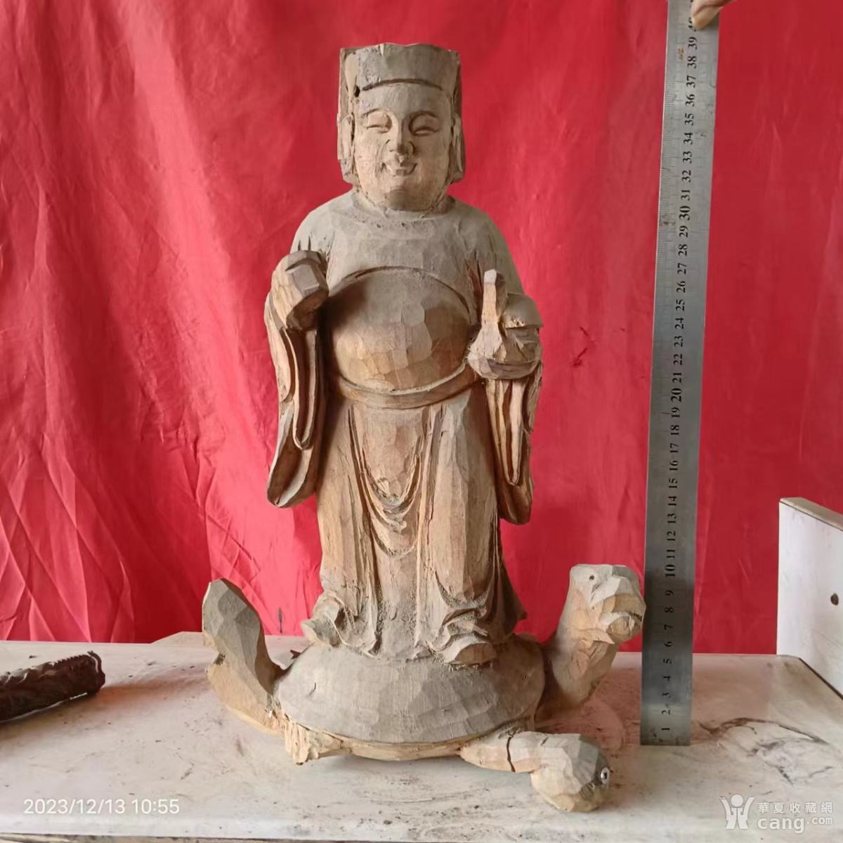 两处用钢钉重新固定,高39长23宽18厘米,樟木雕仙人骑龙龟