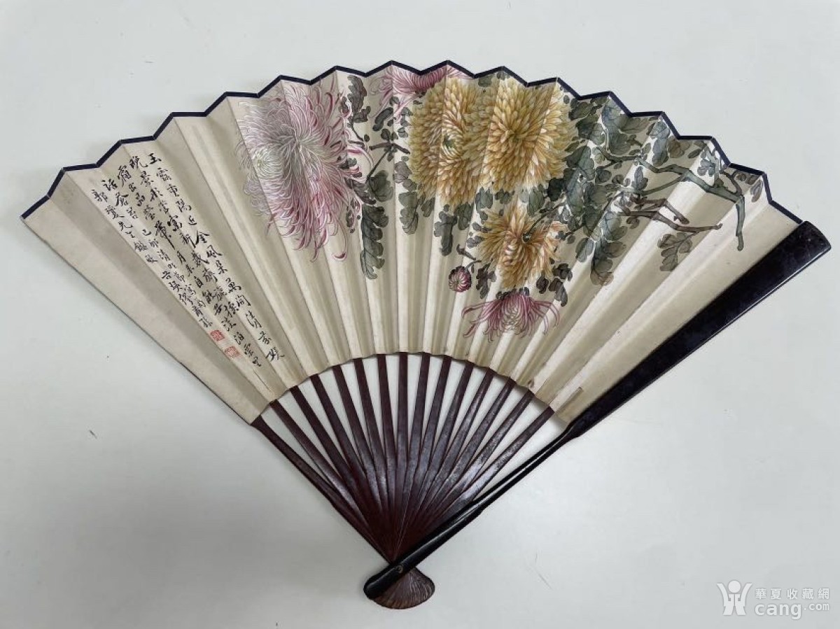 大典著录海上三菊之缪谷瑛菊花海派书法家吴孝仁书法漆骨成扇52