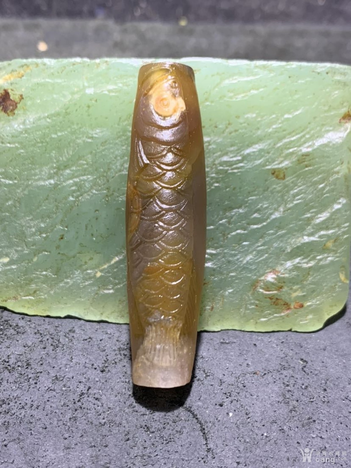 精美亚光高玉化冰飘巴西玛瑙手工俏色巧雕招财龙鱼大桶珠一个!