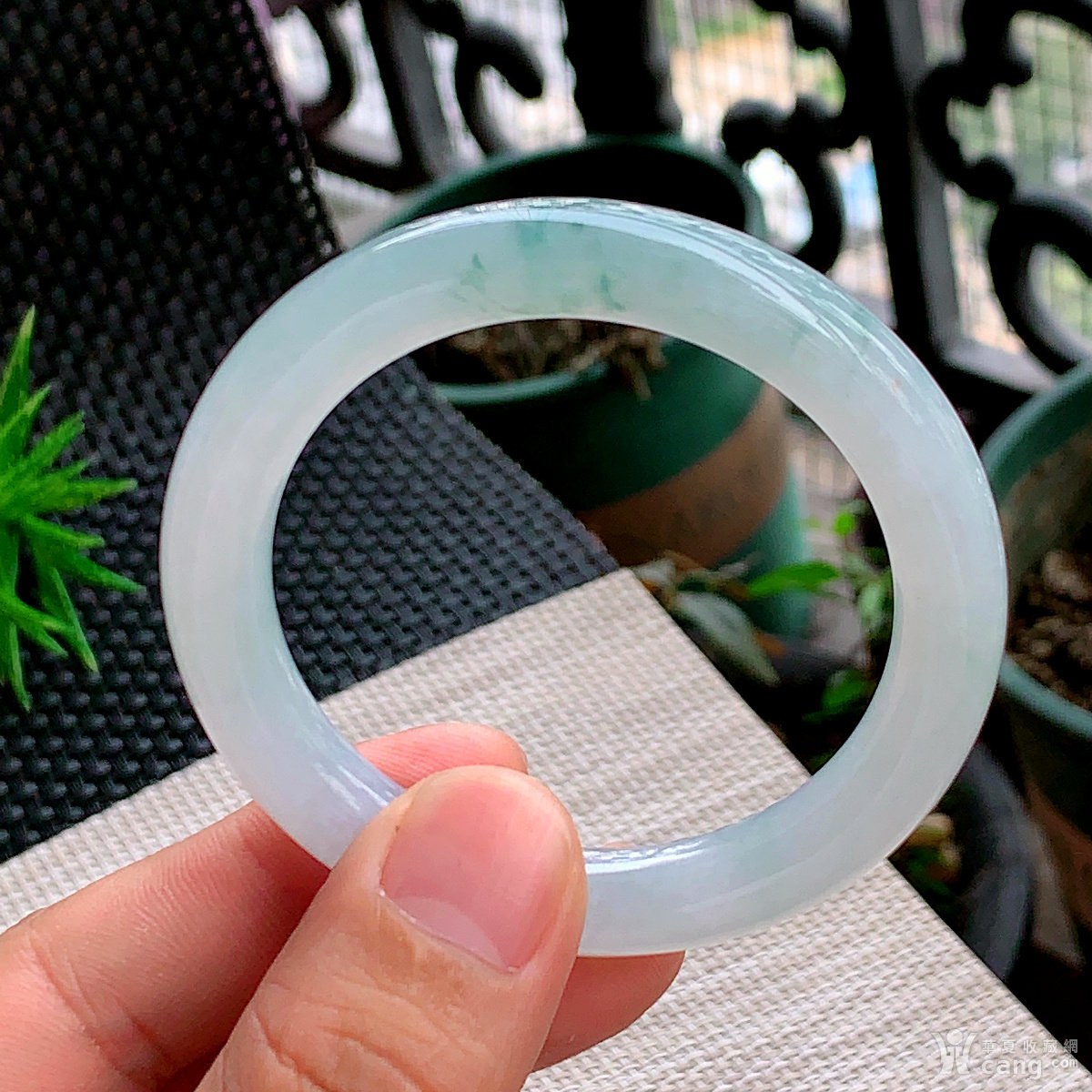 缅甸天然翡翠A货冰透水润飘绿圆条手镯54圈口