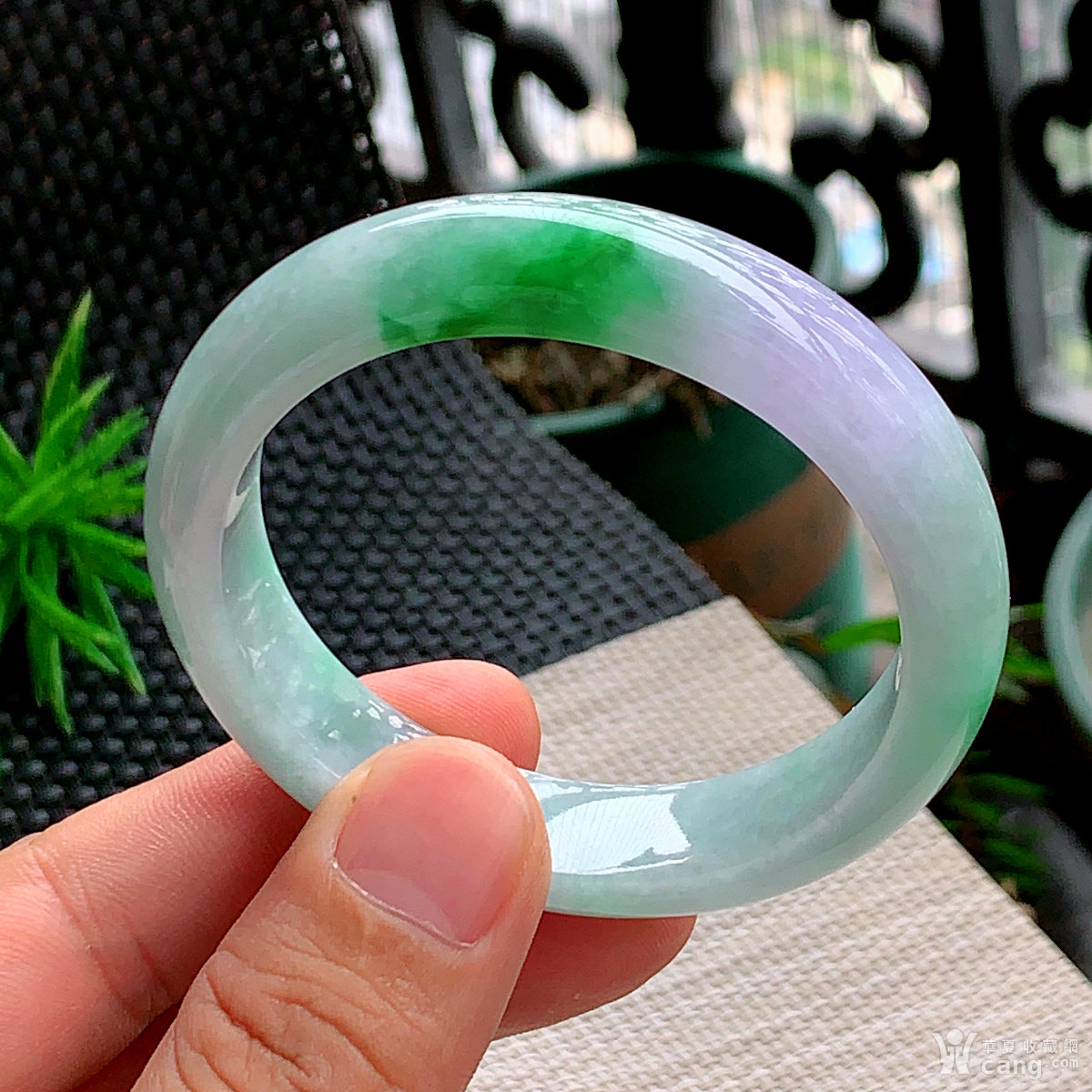 缅甸天然翡翠A货冰润春带彩宽边手镯55.8圈口